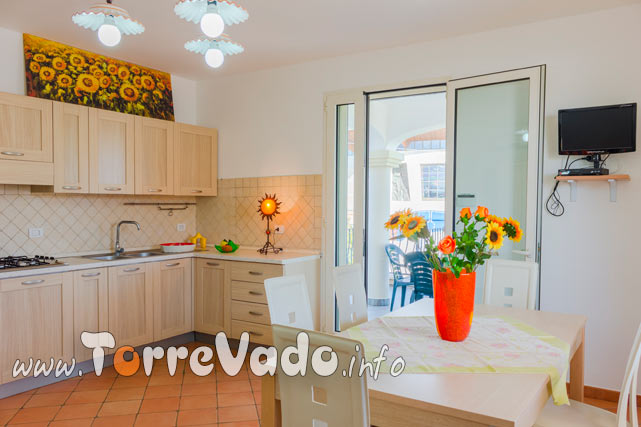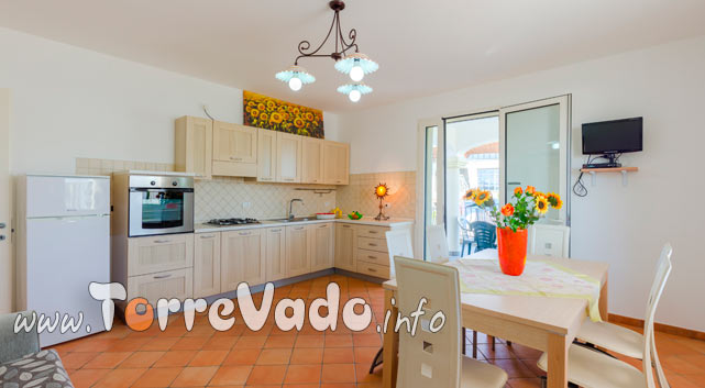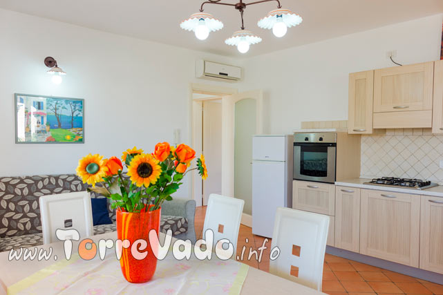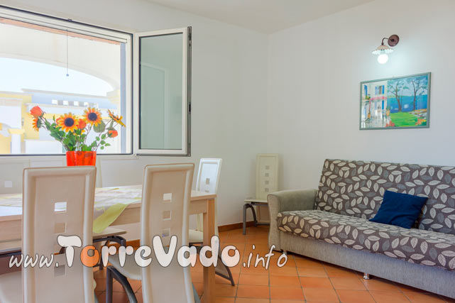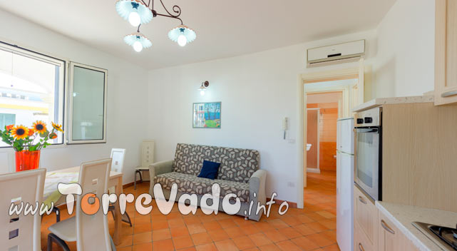 Gli spazi sono pensati per una vacanza senza pensieri: 65 mq ben distribuiti, 2 camere da letto, 1 bagno e un luminoso open space soggiorno/cucina con divano letto, per un totale di fino a 5 posti letto.