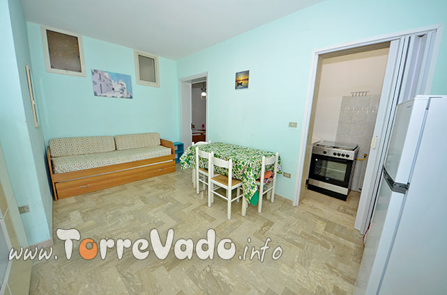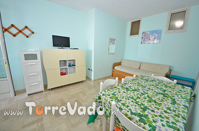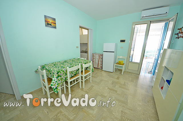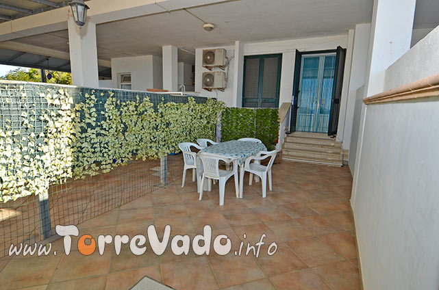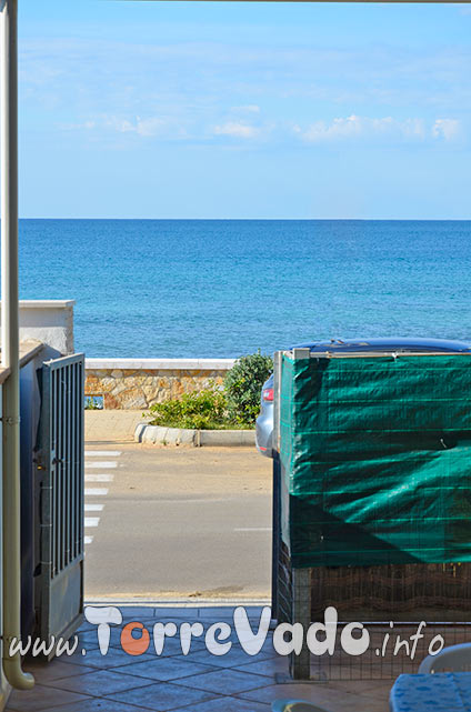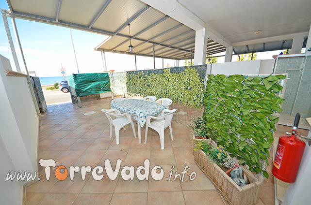 Il punto forte di Casa Valerio è il suo porticato fronte mare, arredato con tavolo e sedie: lo spazio perfetto per colazioni lente e cene all’aperto, godendosi la brezza marina e l’atmosfera estiva di Torre Vado.