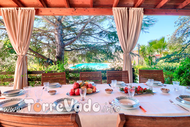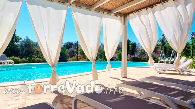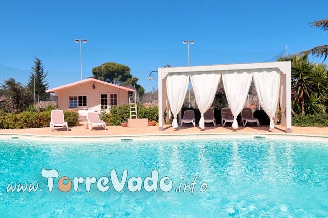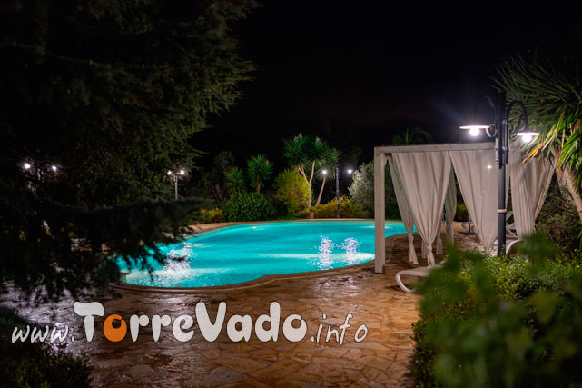 L’intera struttura si sviluppa su 10.000 mq di giardino ben curato, che garantisce la giusta privacy per una vacanza all’insegna del benessere. Sul retro della stessa cattura subito l’attenzione la piscina, dotata di ogni comfort ed incorniciata da una rigogliosa vegetazione. Il patio esterno, invece, offre un’utile copertura durante le ore più calde della giornata.